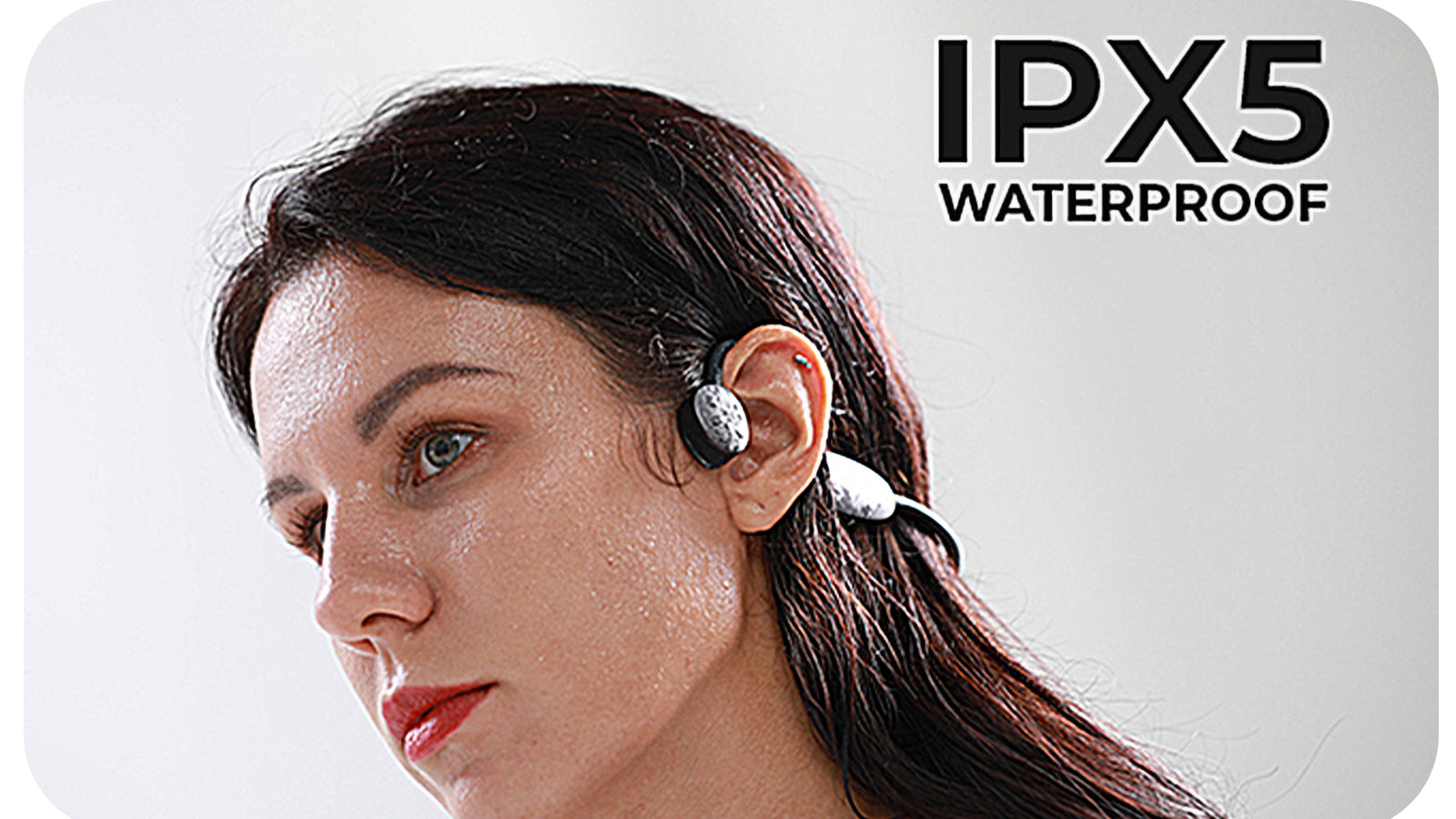 Bone Conduction Technology: Sound through cheekbone (keeps ears open)